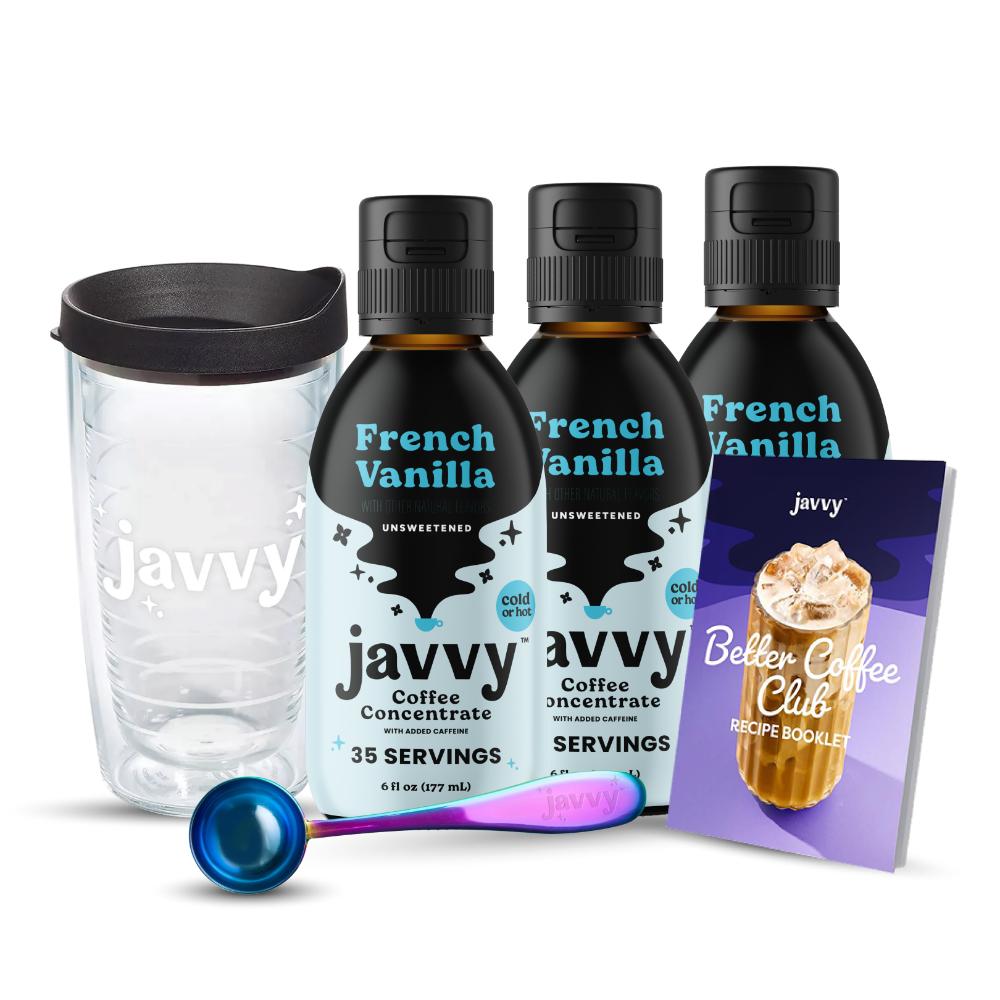 Coffee Concentrate French Vanilla 3 pk Bundle + Free Javvy Tumbler + Free Javvy Spoon + Recipe Booklet