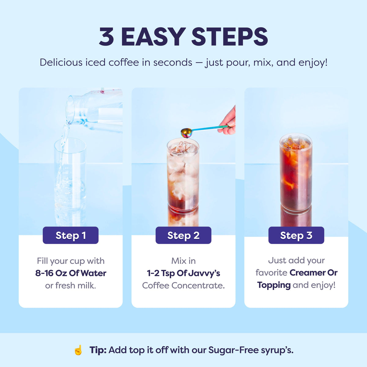 - Mix in 1-2 tsp of Coffee Concentrate.
