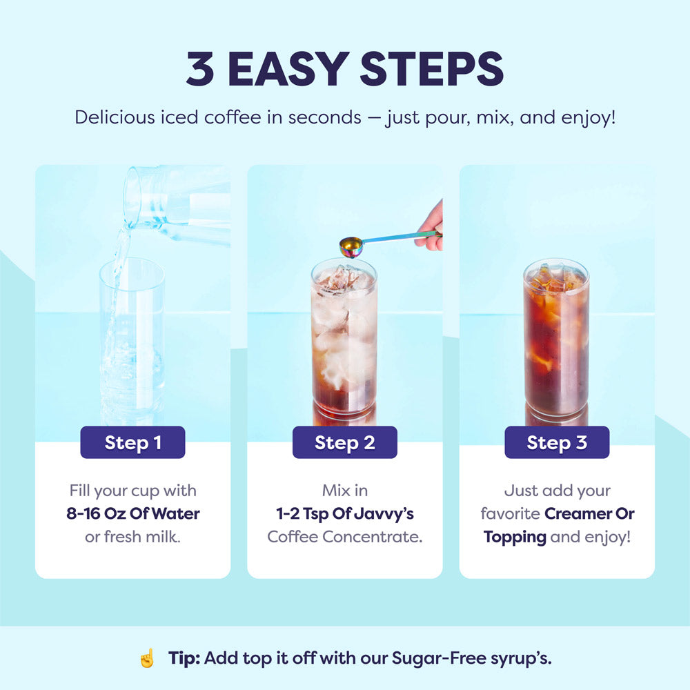 - Mix in 1-2 tsp of Coffee Concentrate.