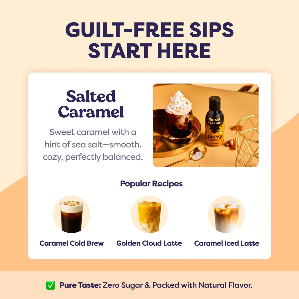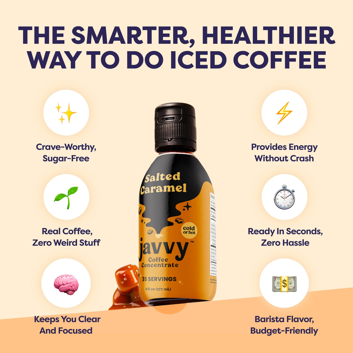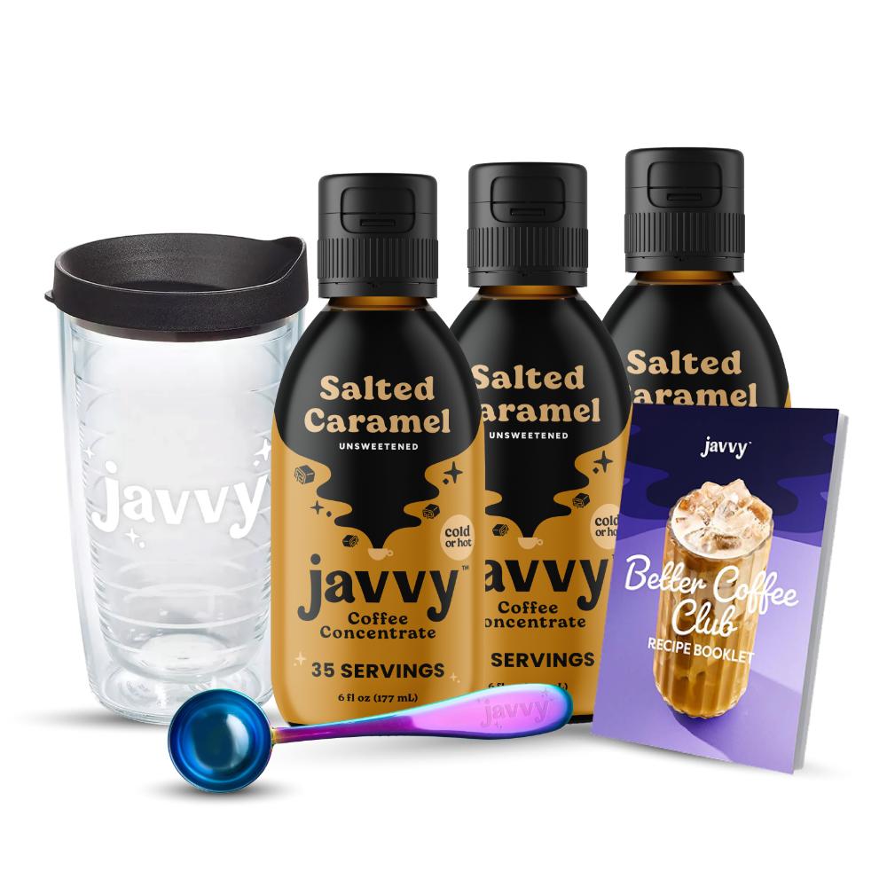 Coffee Concentrate Salted Caramel 3 pk Bundle + Free Javvy Tumbler + Free Javvy Spoon + Recipe Booklet