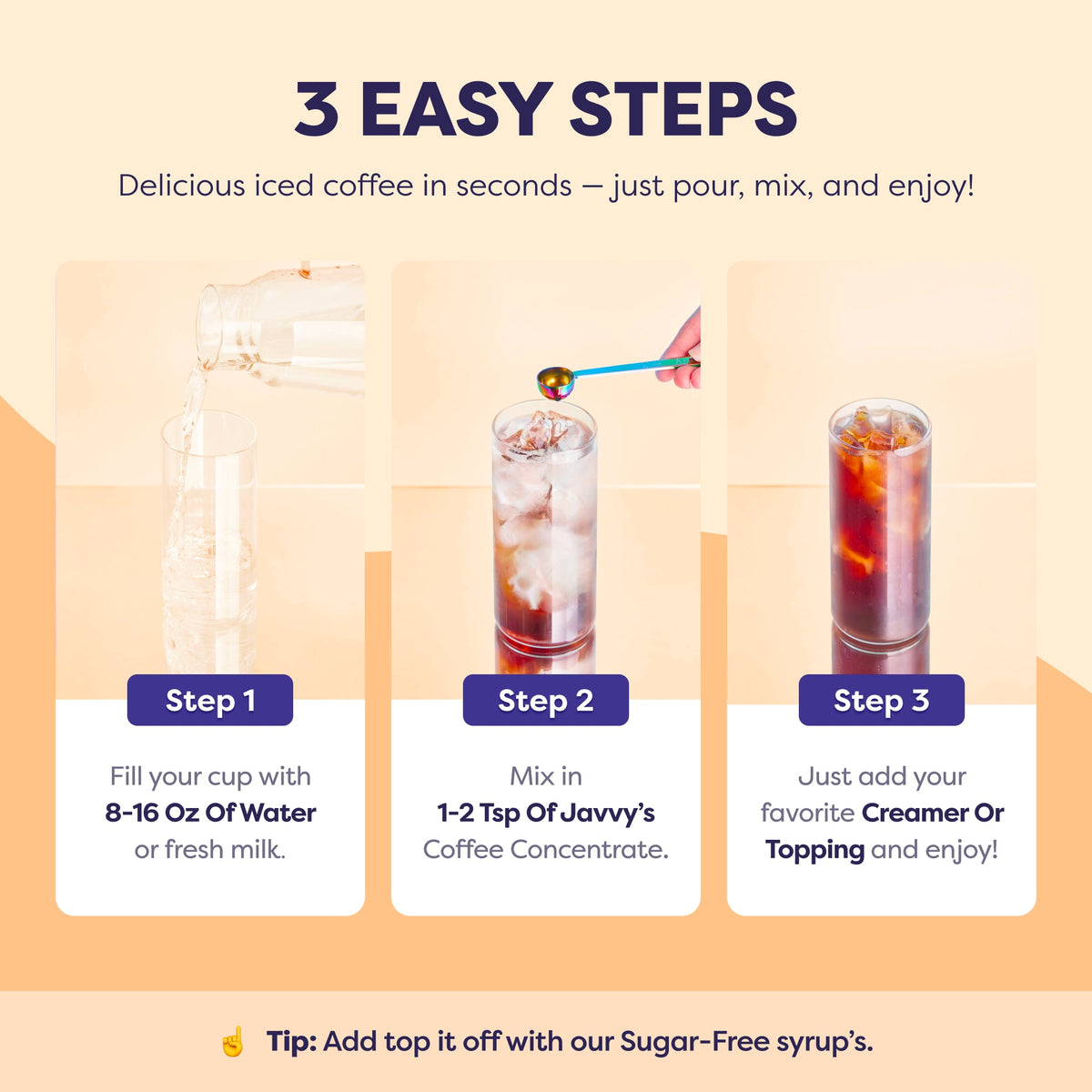 - Mix in 1-2 tsp of Coffee Concentrate.
