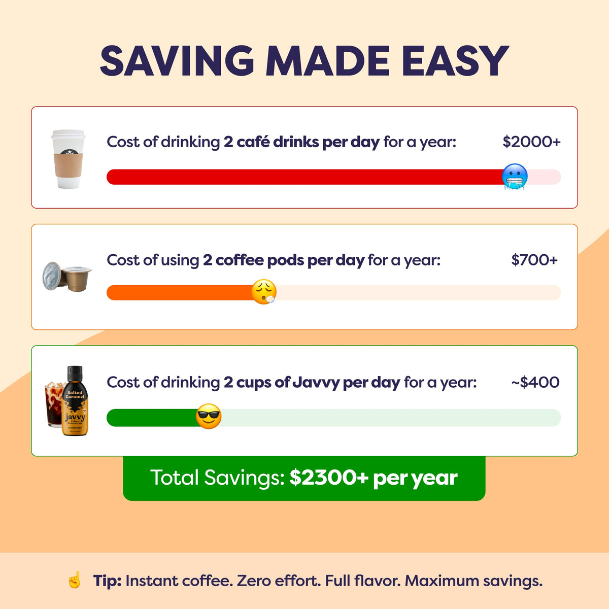 Javvy Coffee Concentrate is the fastest, easiest way to enjoy better coffee - without the sugar, hassle, or compromise. Javvy Coffee Concentrate delivers 100% real coffee with naturally derived ingredients, zero sugar, and no artificial flavors, all in a variety of crave-worthy options. With 60mg of caffeine per serving, each bottle brews up 35 rich, satisfying cups — hot or iced — in seconds. It’s gluten-free and guilt-free, so you can indulge in better-tasting coffee, faster. With this bundle, you’ll also receive a FREE Javvy Tumbler, a recipe booklet featuring our customers’ favorite creations, and a FREE Javvy spoon for the perfect serving size.