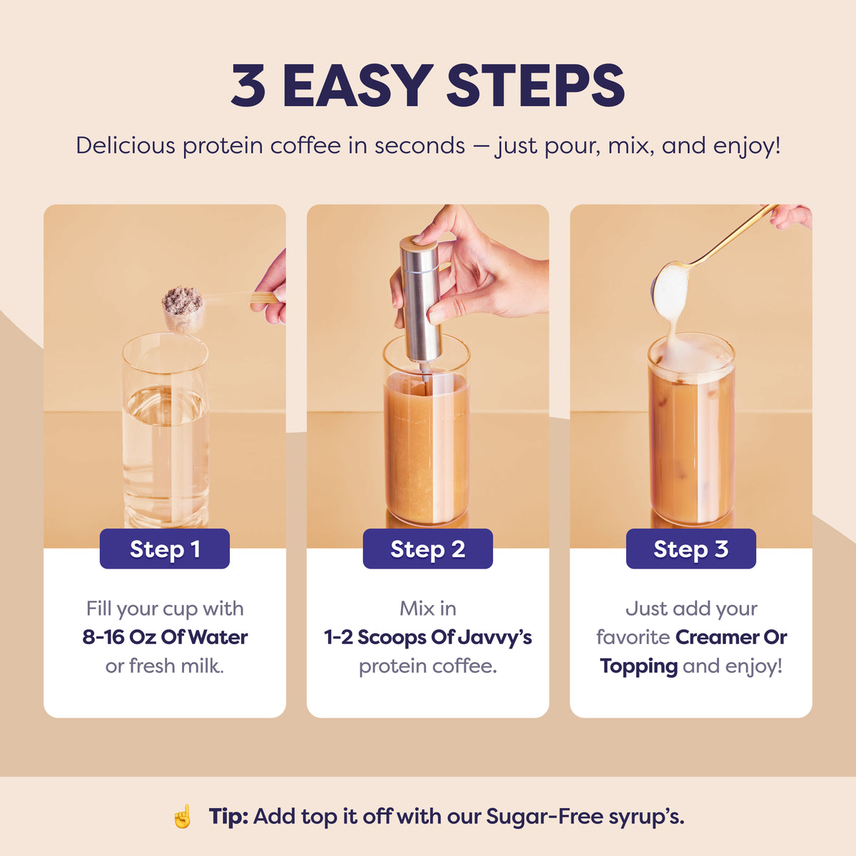 - Step 1: Add 1-2 scoops of Protein Creamer.