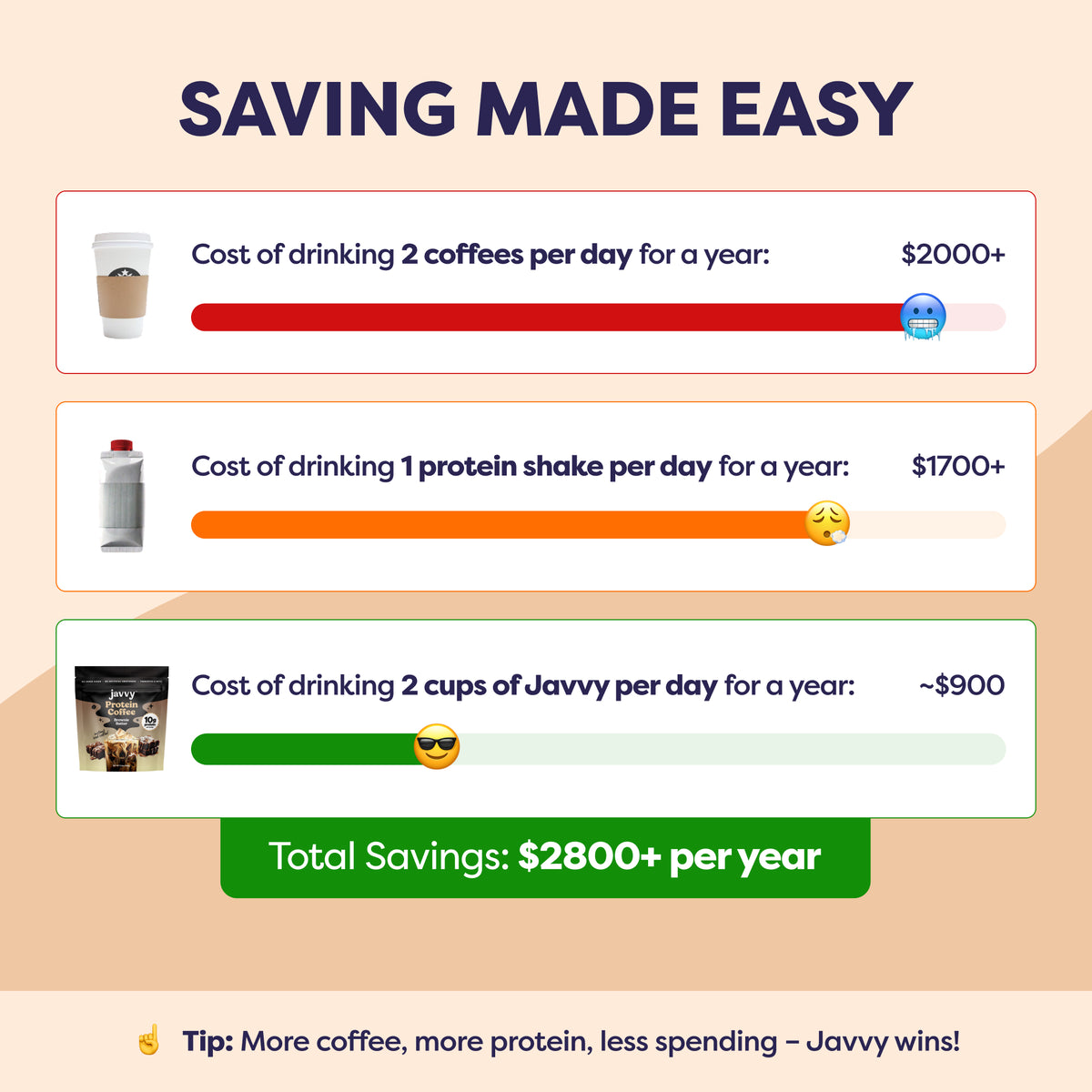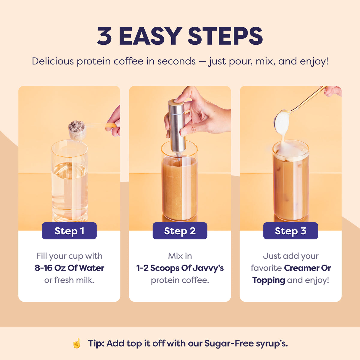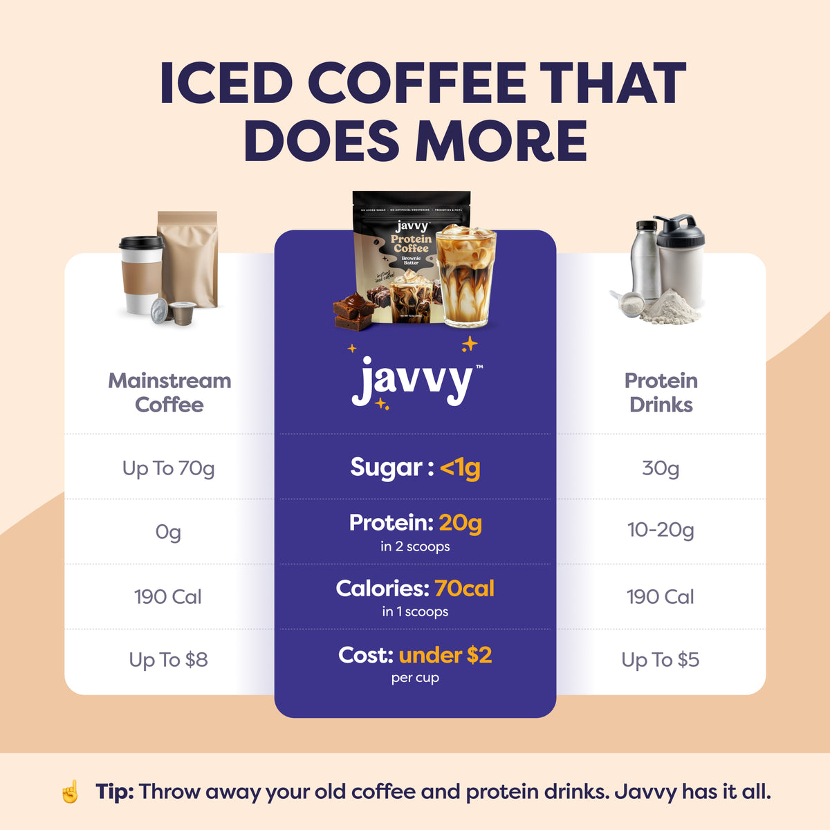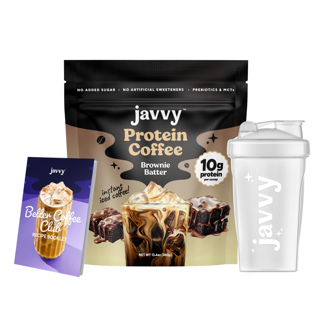 Experience the easiest, most delicious way to kick-start your day while reaching your health goals! With 10g of protein, prebiotics, and MCTs, Javvy Protein Coffee delivers a crave-worthy blend of flavor and nutrition — crafted with quality ingredients, no artificial sweeteners, and less than 1g of naturally occurring sugar from Whey Protein. With this bundle, you’ll also receive a FREE Shaker Bottle to help you craft the perfect iced coffee in seconds, and a recipe booklet featuring our customers’ favorite creations.