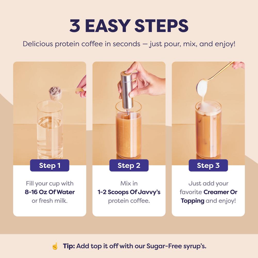 - Add 1 scoop of Protein Coffee.
